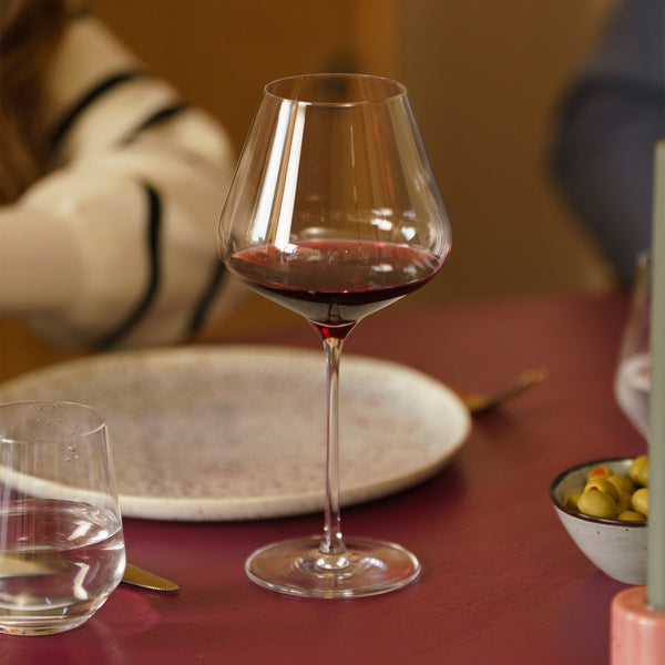 Изящное, но прочное стекло обеспечивает элегантные тактильные ощущения и идеальное восприятие вкуса. Удлиненная ножка и точная обработка высококачественного бессвинцового хрусталя гарантируют долговечность и исключительный блеск.